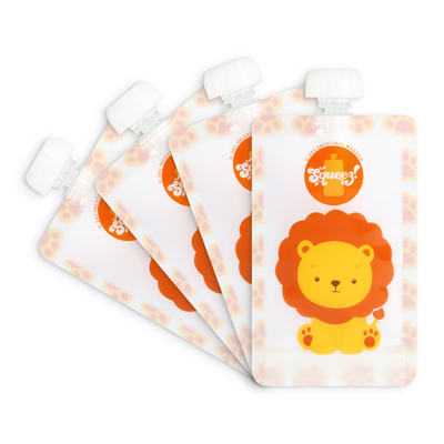 Pack 4 Pacotes reutilizáveis Squeez! 100ml (Leão ou Zebra)