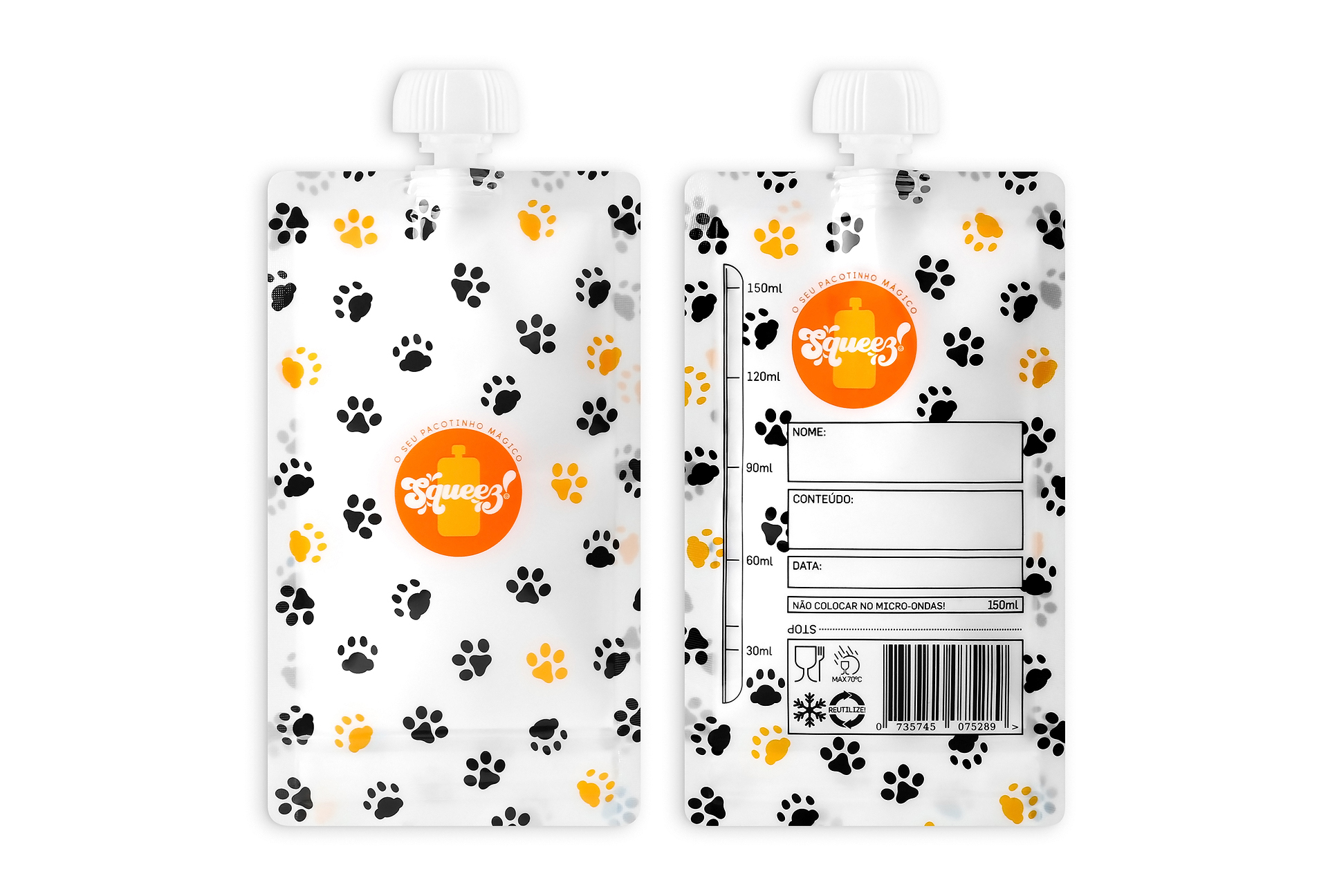 Pacote Reutilizável Squeez Patas 150ml