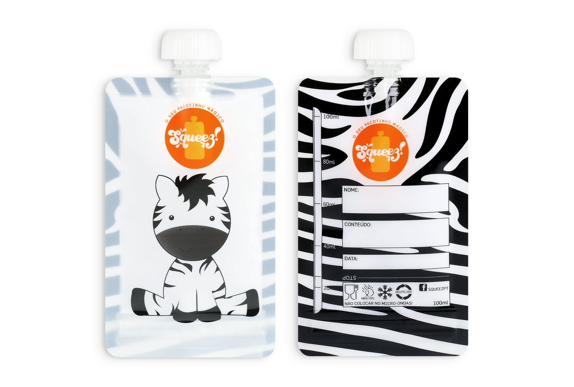 Pacotinho Reutilizável Squeez! AVULSO Zebra 100ML