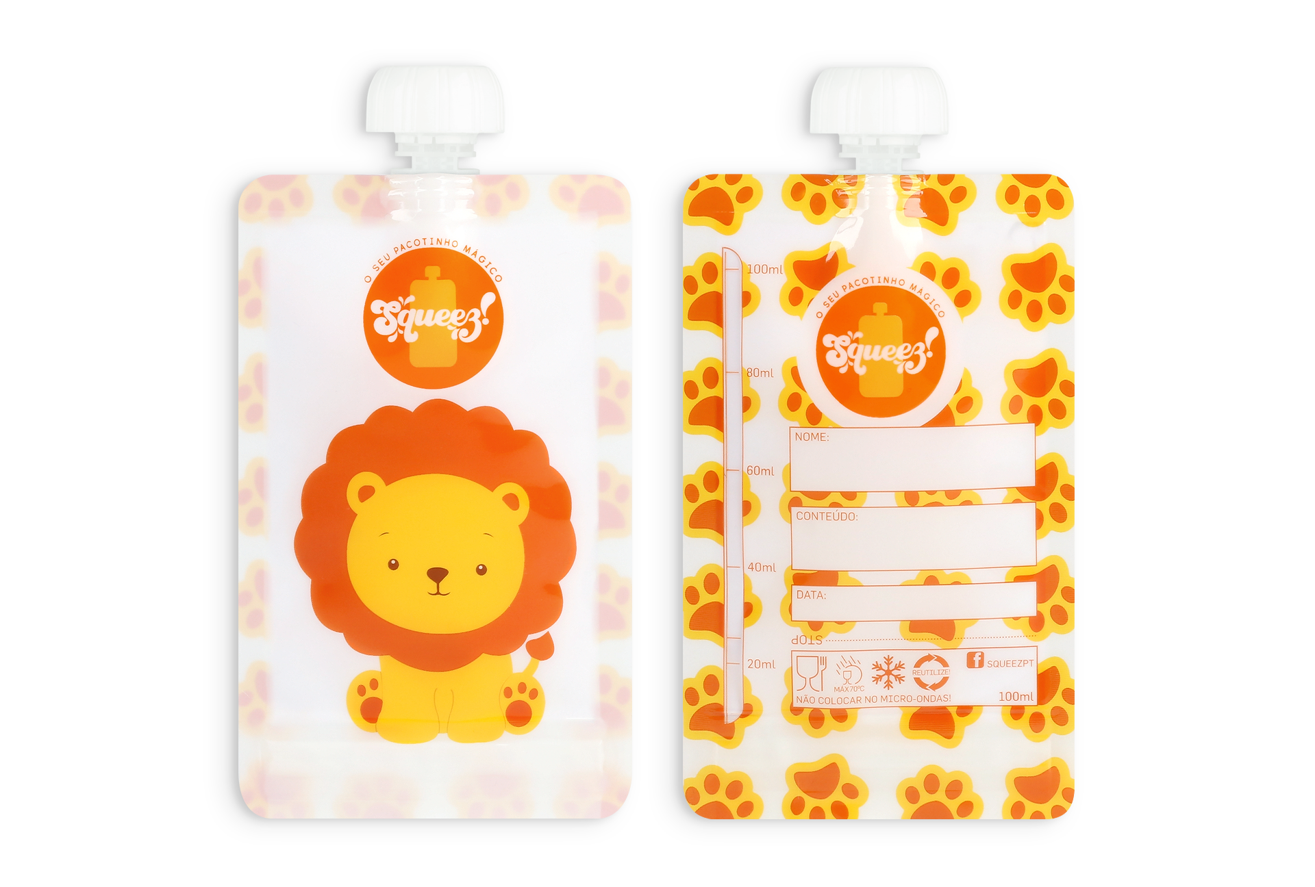 Pacotinho reutilizável Squeez! AVULSO Leão 100ML